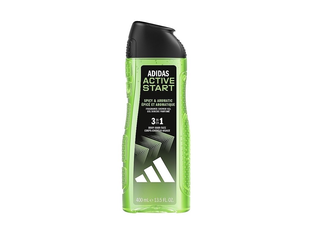 Adidas Hair&Body Active start sprchový gel. Složení hydratuje pleť těla, bere ohledy na pleť obličeje a zároveň pečuje i o vlasy. PH respektující gelové složení odstraňuje přebytečný olej, lehce se oplachuje a zanechává čistě a zdravě vypadající pleť. Každá varianta má také specifickou účinnou látku pro extra účinek. Díky tomuto sprchovému gelu s provitaminem B5 nastartuje svůj den tím správným směrem. Je určen pro všechny muže, kteří chtějí oživit tělo i mysl.