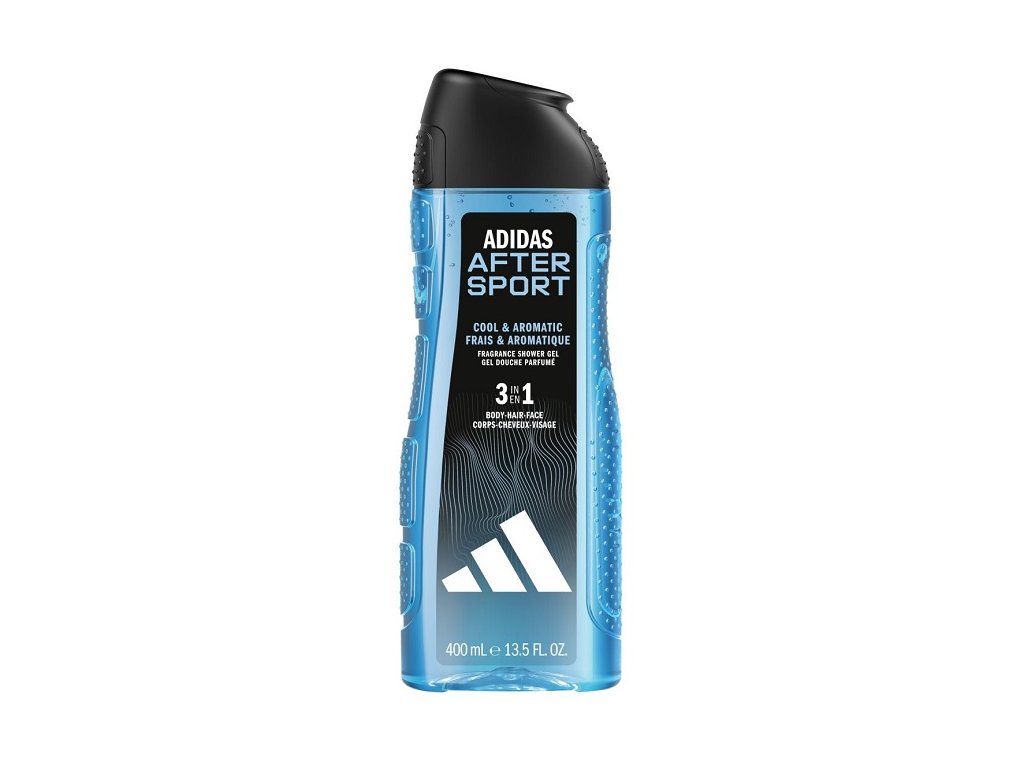 Adidas Hair&Body After Sport sprchový gel. Po náročném tréninku a opakovaném sprchování potřebují vlasy a pokožka sportovce speciální péči. Z toho důvodu adidas vyvinul komplex sprchových gelů na tělo a vlasy: Hair & Body 3. Jsou vyrobeny tak, aby zajistily pocit regenerace po cvičení nebo na konci aktivního dne. Potěší svěží aromatickou vůní kombinující citrusové akcenty a jemné akordy Pižma.