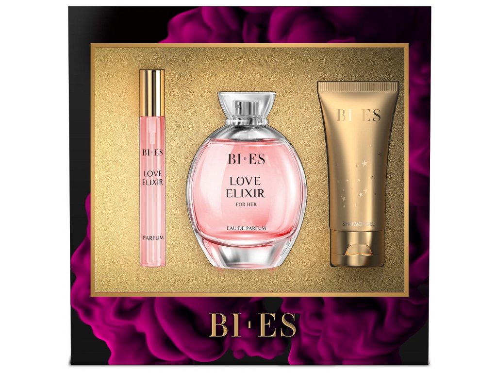 BI-ES sada Love Elixir EDP 100ml+parfém 12ml+sprchový gel 50ml