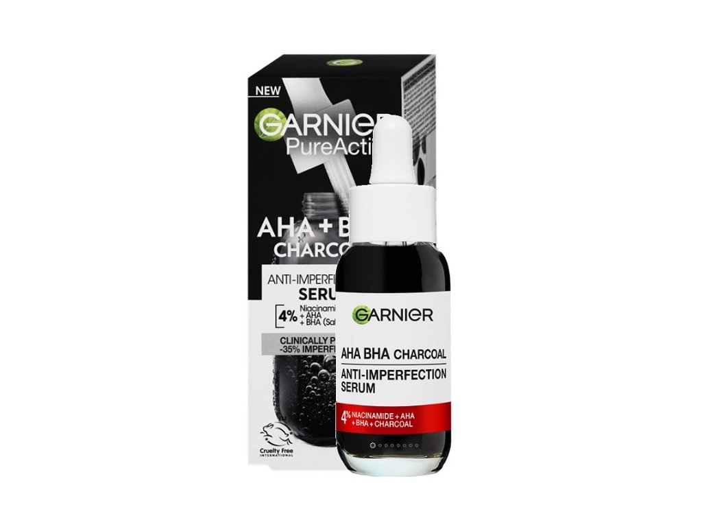 Sérum se 4 % obsahem aktivních látek [niacinamid + aha+ bha] redukuje pupínky a výskyt skvrn a nedokonalostí. Obnovuje povrch pleti a zanechává ji hladší a sjednocenější. 4 % [niacinamid + aha+ bha] aha je známá svými exfoliačními vlastnosti, bha napomáhá redukovat nedokonalosti a póry a niacinamid je známý pro své protizánětlivé a sjednocující účinky. [AKTIVNÍ UHLÍ] je ingredience přírodního původu pomáhá vyčistit a zmatnit pleť. Vhodné pro všechny typy pleti, včetně citlivé.