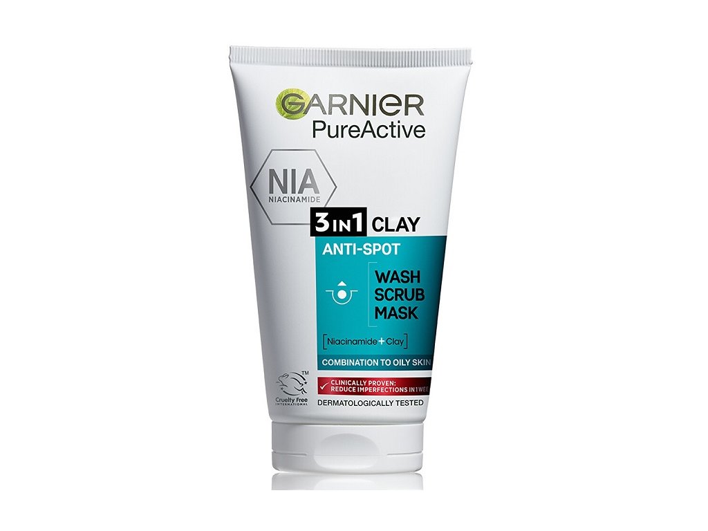 Garnier Pure 3 v 1, čistící gel, peeling a maska, obohacený o jíl a minerální zinek, s antibakteriálním složením, lze používat pravidelně jako čistící gel, peeling nebo Matující maska pro viditelné odstranění nečistot a předcházení jejich opětovnému výskytu.