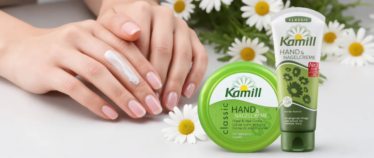 Receptura krémů na ruce Kamill je založena na formuli Skin Balance Essence s koncentrovanou silou heřmánku, díky které krémy kromě hydratace a standardní péče působí protizánětlivě a zmírňují veškeré podráždění pokožky rukou a nehtů.
