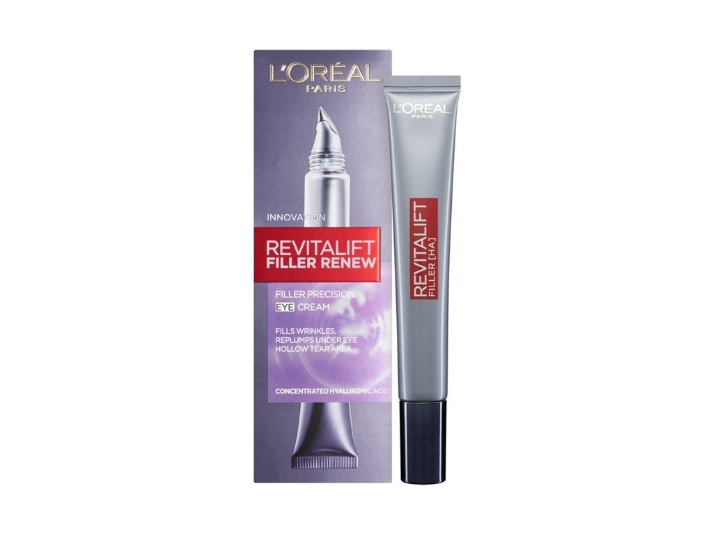 Oční krém Revitalift Filler HA vyhlazuje vrásky a odstraňuje drobné linky z pokožky v oblasti kolem lícních kostí až k vnitřnímu koutku oka. Obnovuje ochablou pleť a dodává jí přirozenou pružnost. Mimořádně vysoká koncentrace kyseliny hyaluronové poskytuje pleti hloubkovou hydrataci a navrací jí svěžest. Přípravek jedinečným způsobem obnovuje plnost pleti a bojuje tak proti jejímu stárnutí.
