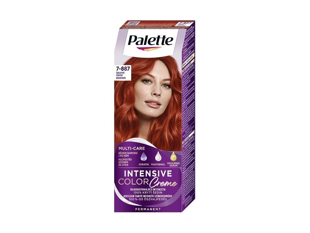 S barvou Palette 7-887 (RV6) získáte sebevědomý a energický vzhled s vlasy, které budou zářit zdravím a fascinující šarlatovou barvou.