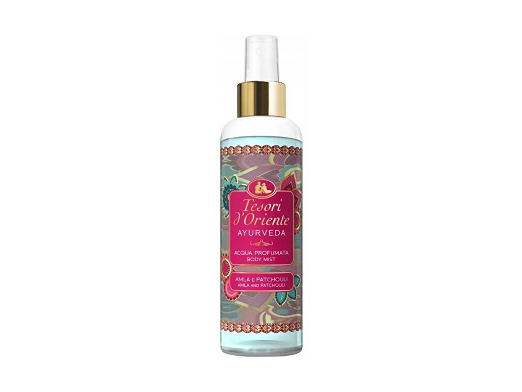 Tesori d'Oriente tělová mlha Ayurveda má uklidňující a blahodárný účinek. Tato vůně přináší rovnováhu tělu i duchu. Jantarovo-dřevitá vůně projasněná tóny sladkého pomeranče, citronu a pikantního růžového pepře, zdobená vzácným sametovým romantickým základem kosatce, cedrového dřeva a pačule. Nechejte se vtáhnout do světa starodávných indických rituálů.